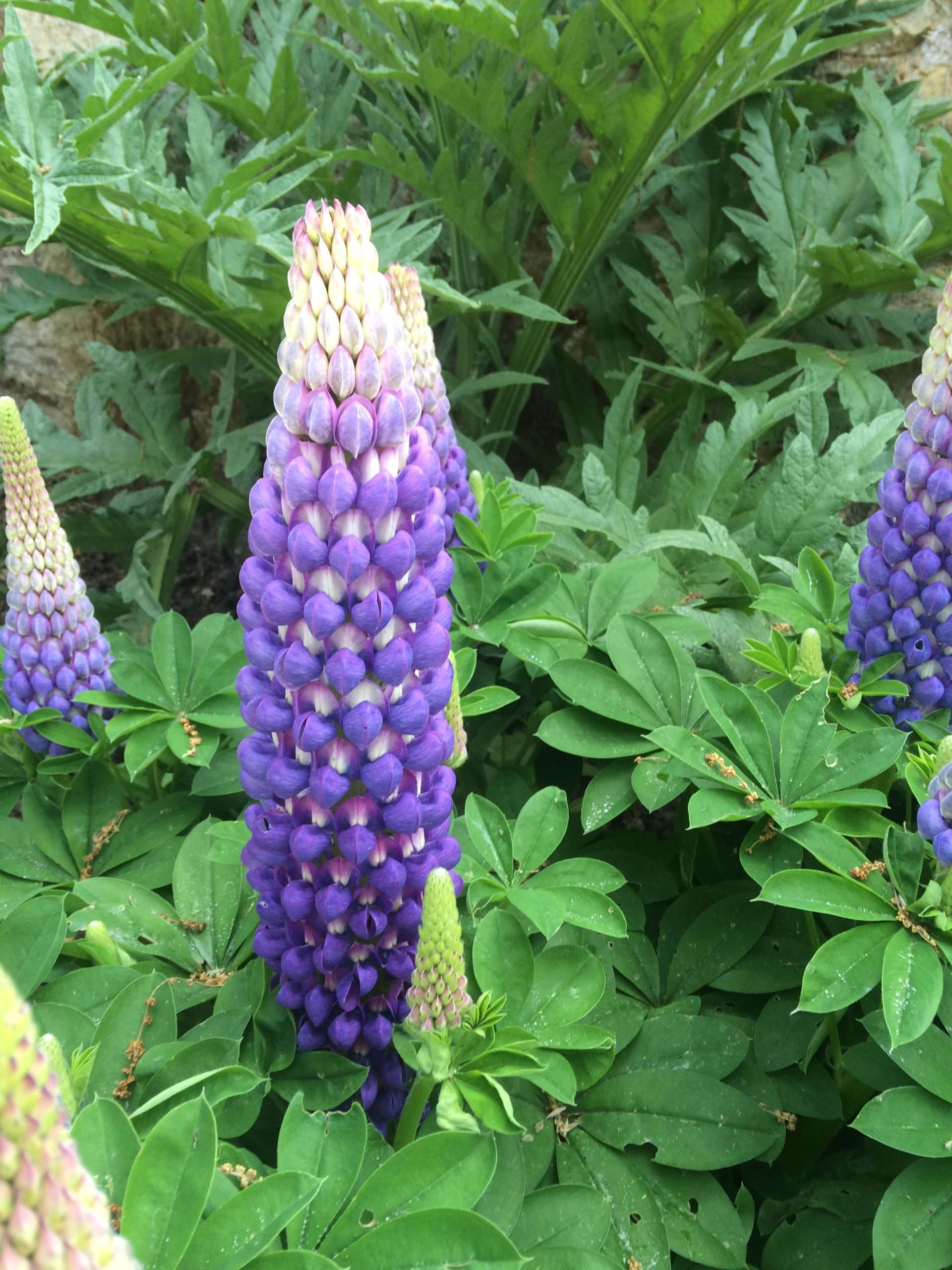 The border has a main rhythm of consistent planting running the length of the walk, filled with purples and blues from spring to autumn .