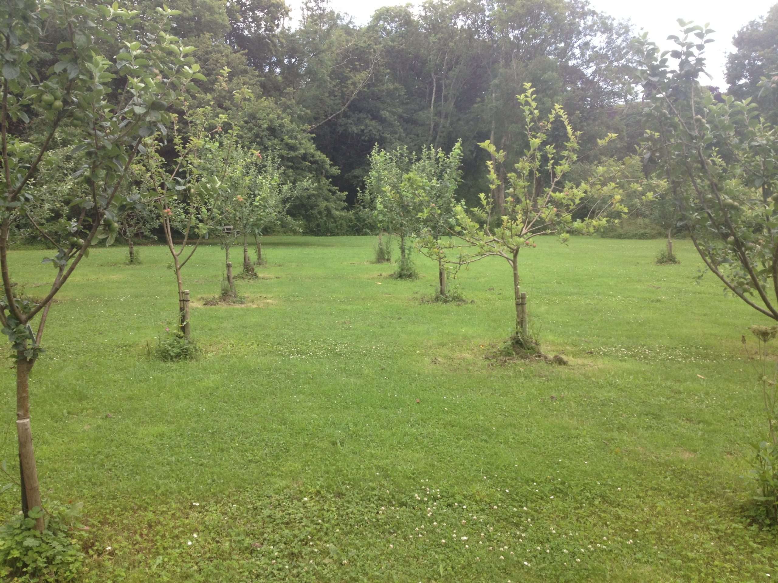 Surrounding the orchard is a native hedge of hornbeam Carpinus betulus, providing shelter from the wind and making the orchard a beautiful suntrap for visitors to relax and have picnics in the summer.