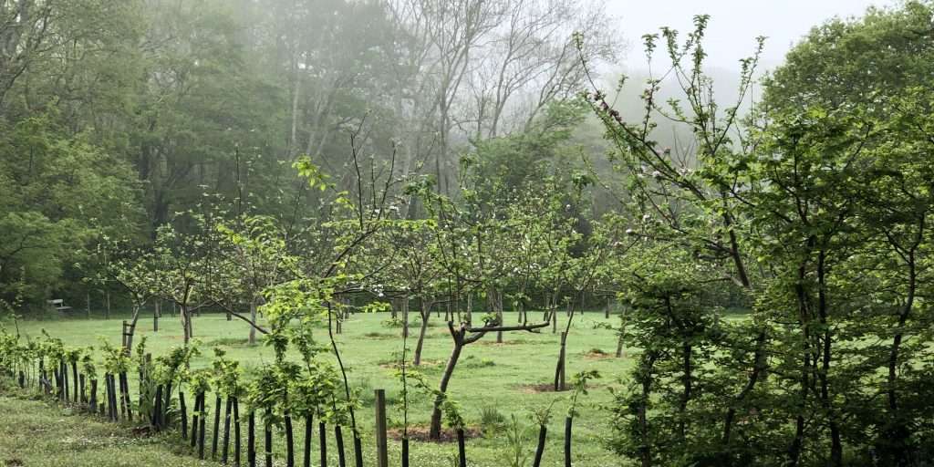 The Orchard, at the bottom of the Gardens, is filled with rows of Cornish apple trees. Started in 2012, the Orchard is now almost fully established and will be providing grafting materials for generations to come.