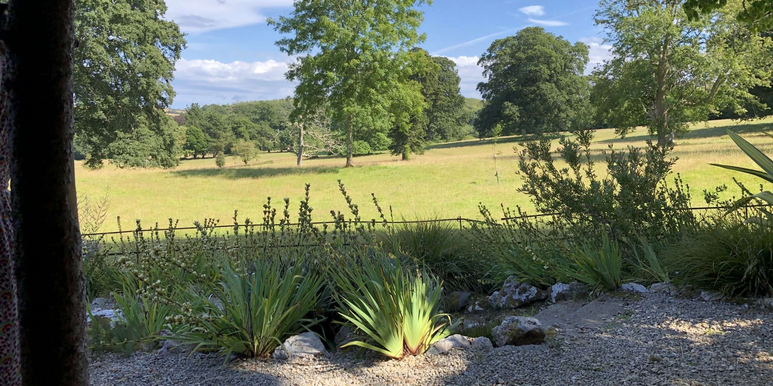 The view over the surrounding parkland, let out to a local farmer, has a number of matures trees, as well as more recently-planted red oaks Quercus rubra for autumn colour.