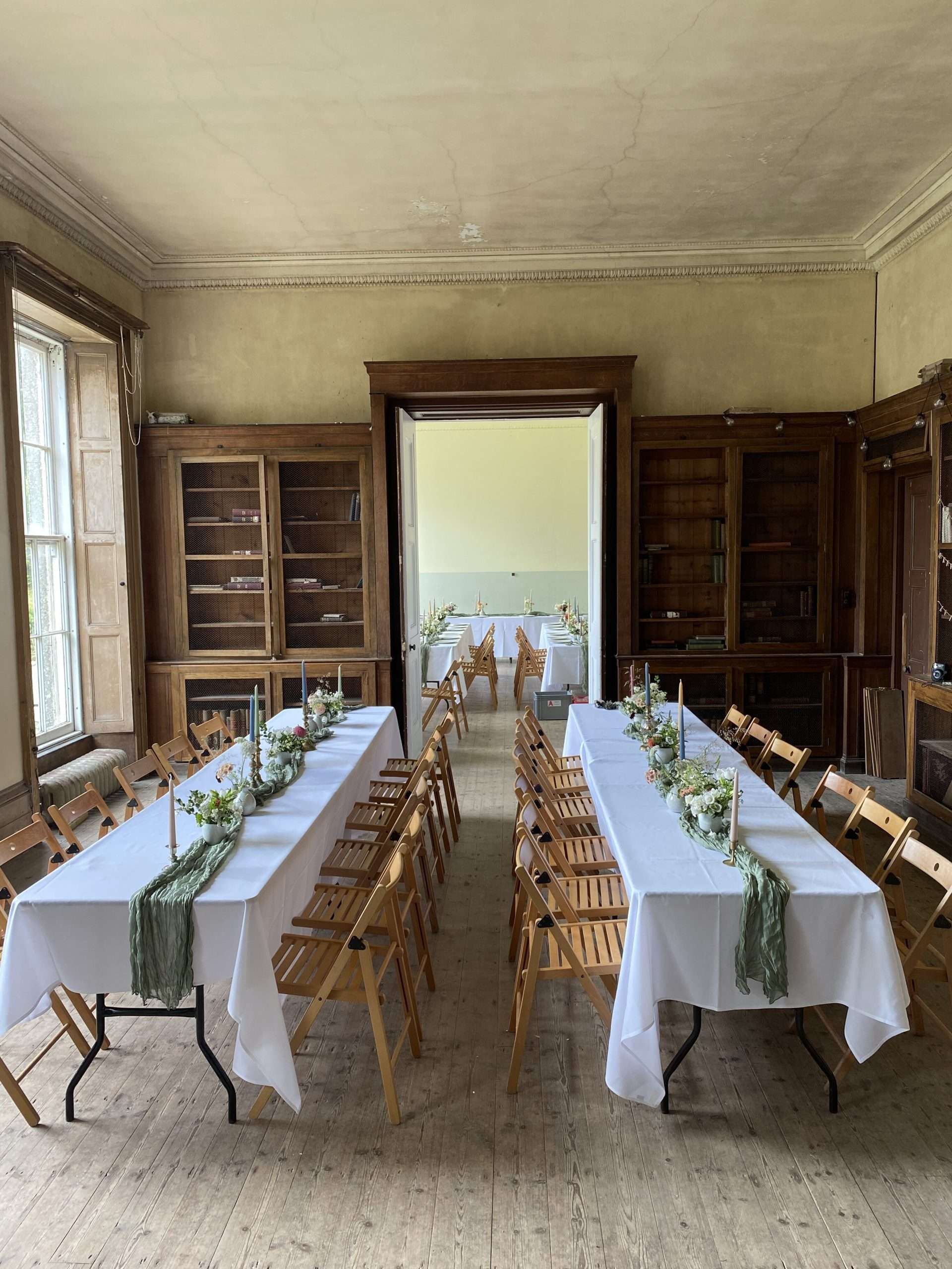 We have three areas inside the old manor house that are licenced for weddings – the Drawing Room, the Library and the Hall.