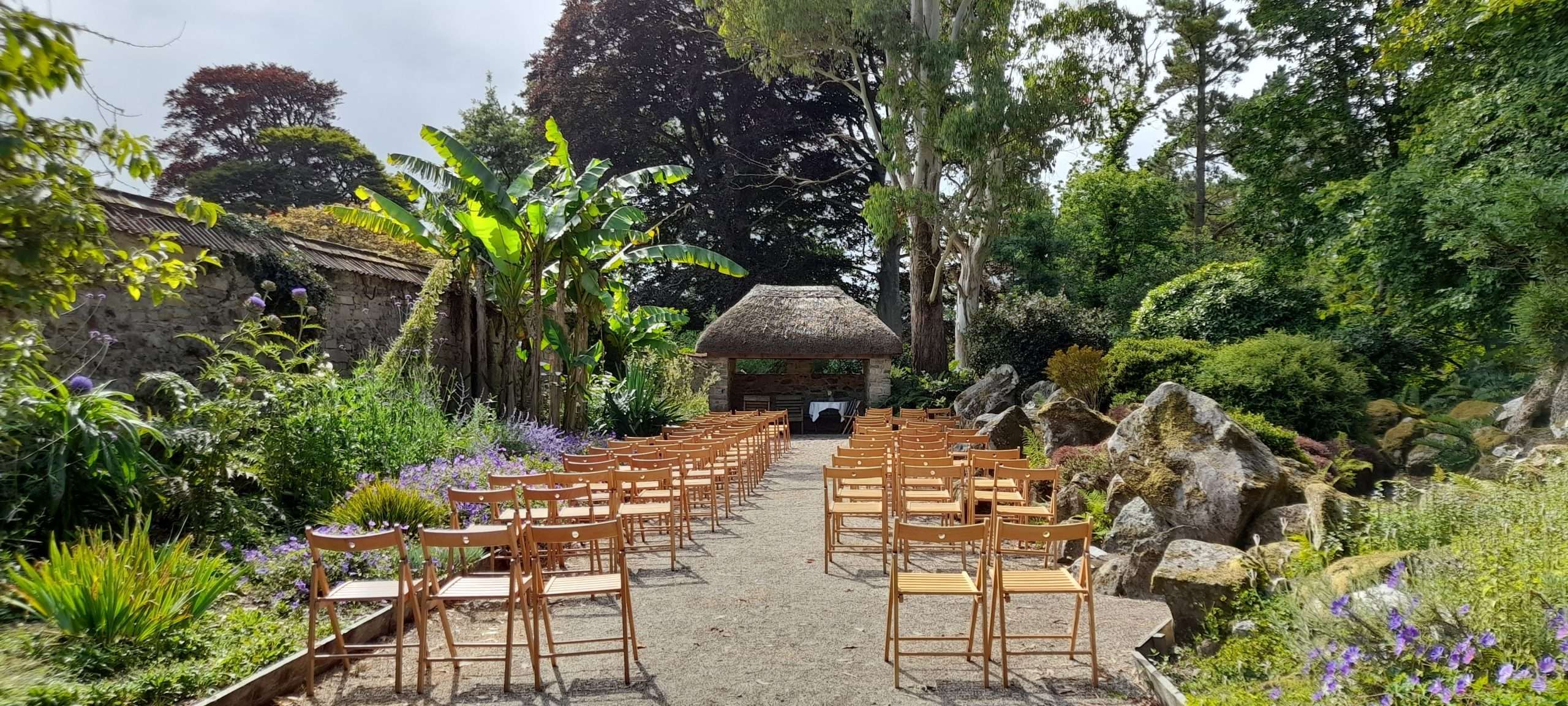 There are 30 acres of tranquil gardens at Enys, you can use as much or as little of it as you wish. Different areas are at their best at different times of the year, but the most breathtaking feature is Parc Lye which is covered with bluebells in May. If you’d prefer a wedding later on in the season the Orchard comes to life in September, and the Pinetum is perfect for a woodland celebration at any time of the year. Another favourite is the meadow walk, which is a meandering path cut into a large area full of ox-eye daises  in June.